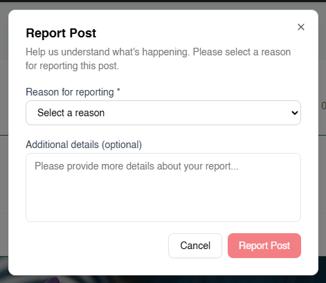 Once you’ve selected a reason and added any relevant details, click the red Report Post button to send your report to the moderation team.
